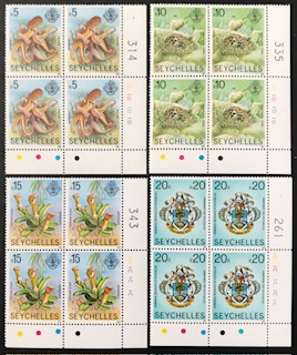 Lot 138 Seychelles 400-03 high values plate Blocks Price: $65.00
